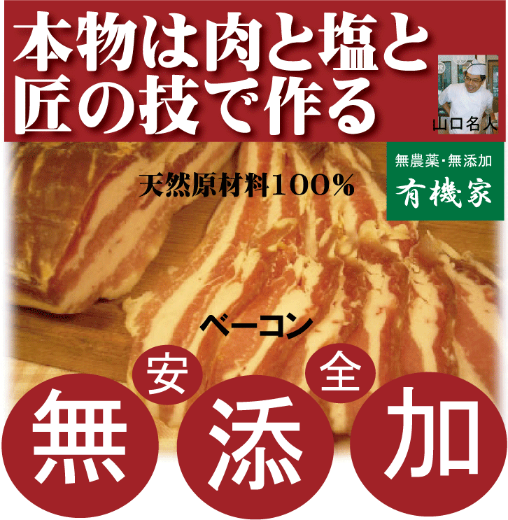 各種添加物や増量剤を使用していないので安心して食べられる本物のベーコンです!